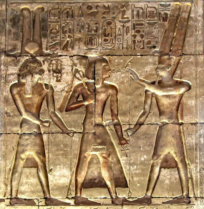 terrain en présence d'Osiris pour marquer le pourtour du temple. (R. David, 1973, p. 37). (photo manquante)