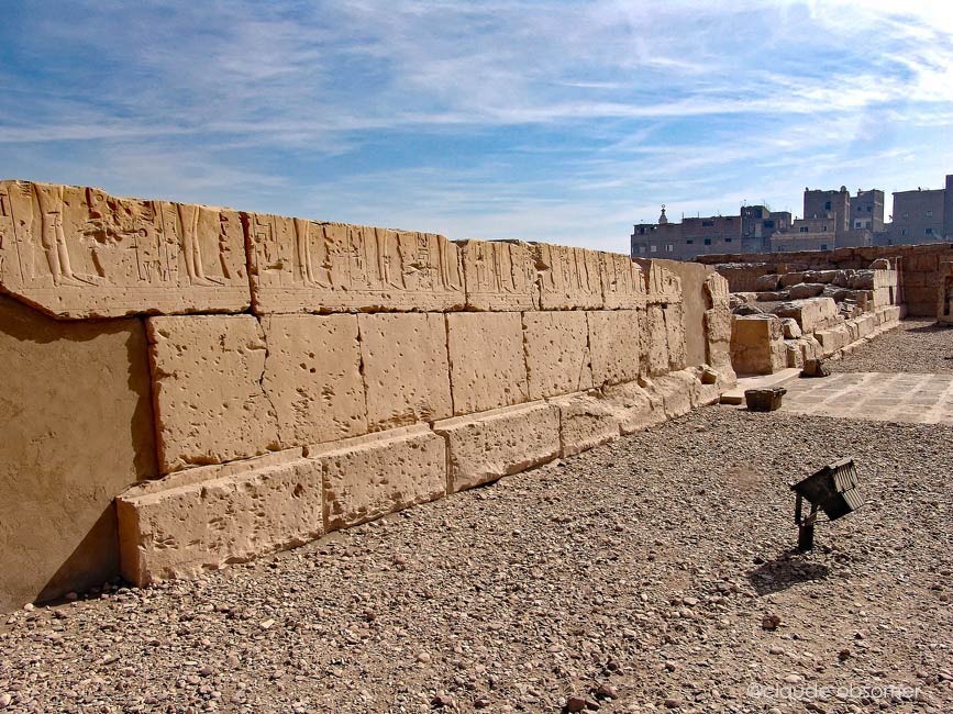 Ce pylône constitue le côté Est de la seconde cour. Le tore du début est conservé dans sa partie basse. ensuite, est gravée la din du défilé des princesses, coupé par la porte dèjà présentée de l'autre côté.