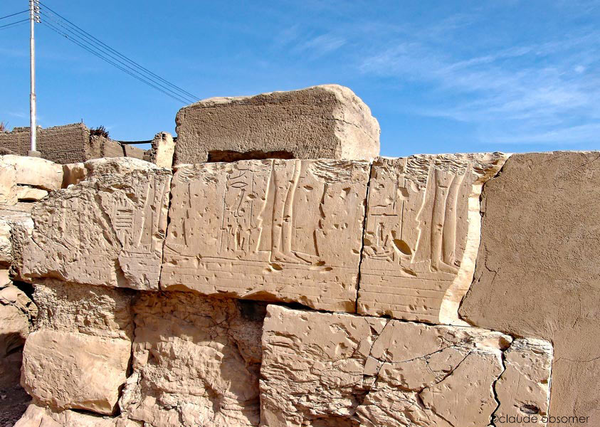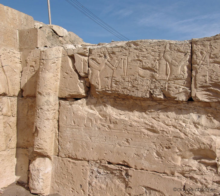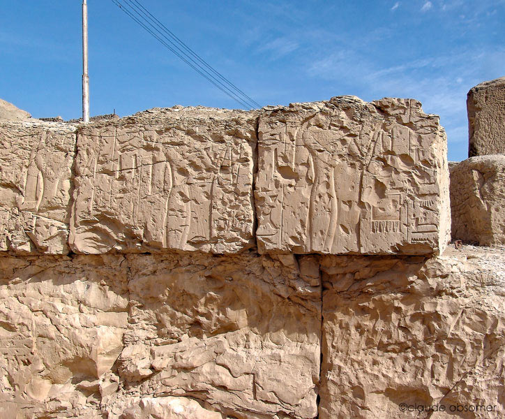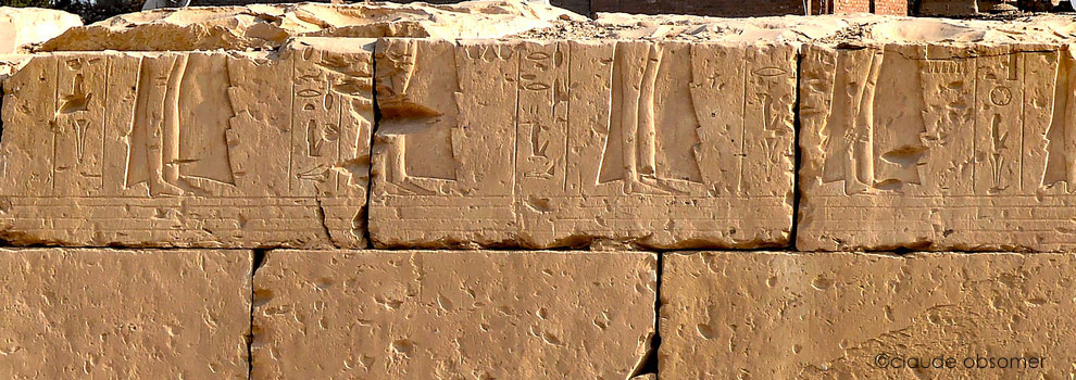Les représentations des princesses,sont réduites aux jambes avec quelques signes hiéroglyphiques ne permettant de seulement deviner leurs noms pour la plupart. Sur cette partie du pylône les vestiges des 12 premières princesses qui subsistent.