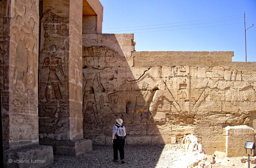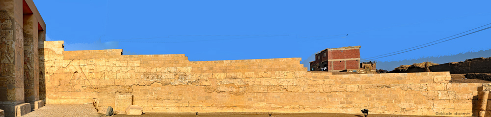 Sur cette paroi, une dizaine de scènes ont été gravées sous Ramsès II. L'avant-dernière représente le roi en train de massacrer ses ennemis (voir ci-dessous).À gauche la dernière scène se trouve sous le portique