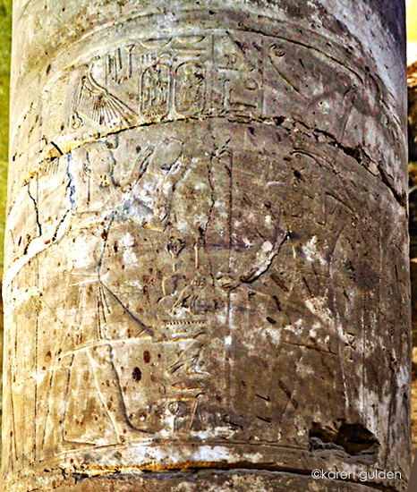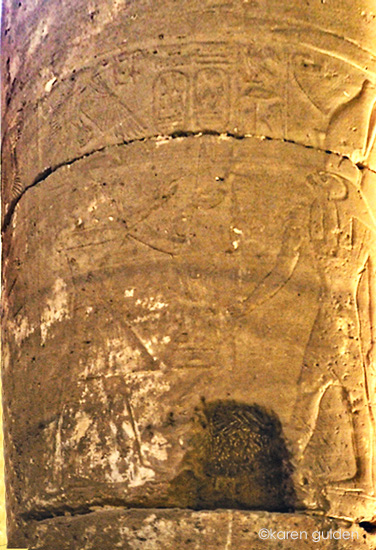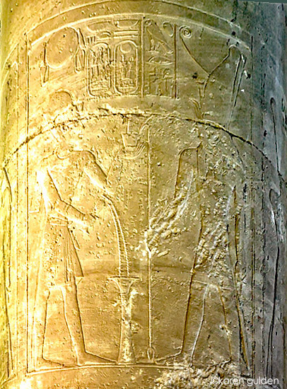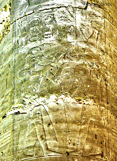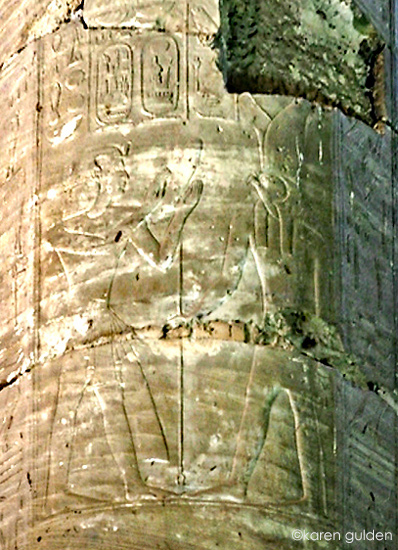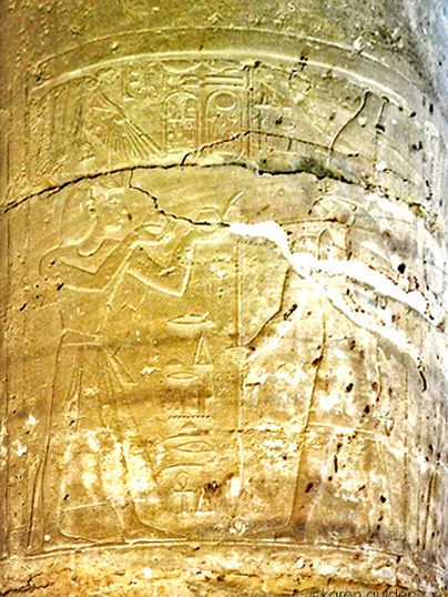 La travée d'Horus ne comporte qu'une seule rangée de colonnes. La numérotation utilisée reprend celle du site AbydosSethy.net, la rangée de la travée d'Horus portant le numéro 1.