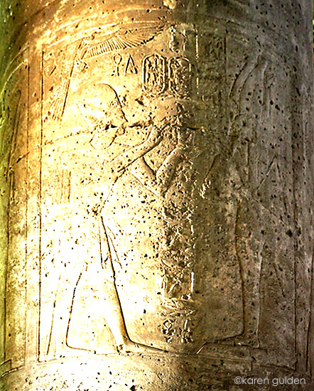 La travée d'Osiris comporte deux rangées de colonnes, numérotées 24 et 5. . La numérotation utilisée reprend celle du site AbydosSethy.net.
