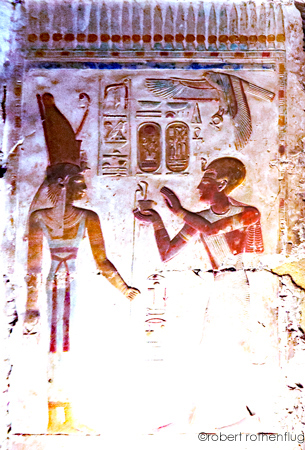 Scène du côté Sud :le roi présente la Maât à Rê-Horakhty. Le dieu lui donne toute santé.
