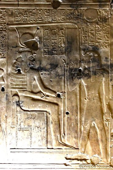 Le roi délie le sceau de la porte de la petite chapelle où Isis est assis sur son trône. Isis lui donne toute bravoure et toute victoire.