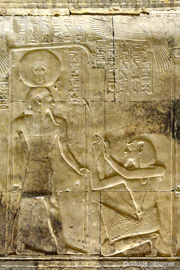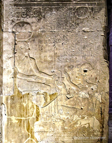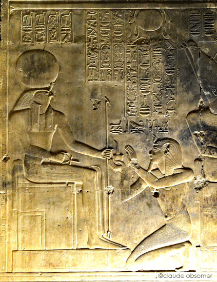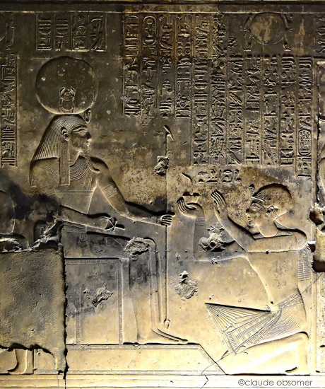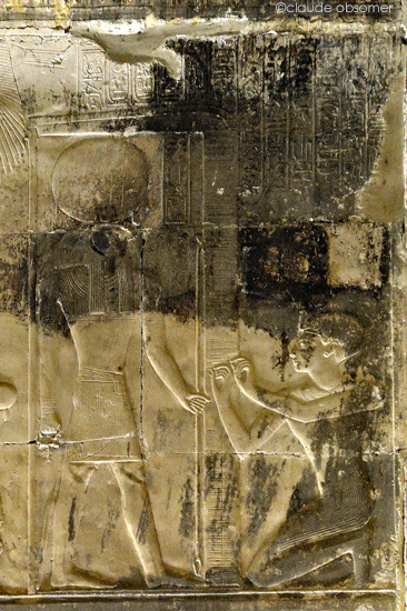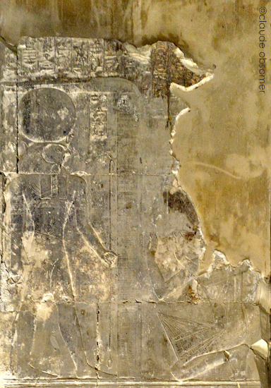 Le roi (Men-Maât-Rê)I rompt l'argile du sceau pour pouvoir tirer le verrou. Le dieu lui donne toute santé. (vue mise pour illustration bien que floue)
