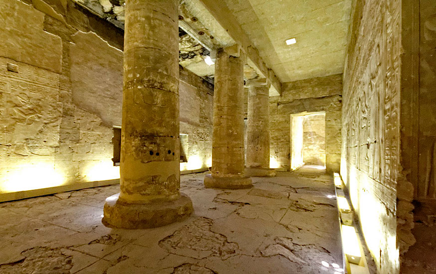 Le complexe de Nefertoum-Sokar (ou Ptah-Sokar pour certains) se compose d'un grand hall et de deux chapelles. Le hall a une longueur de 16;30 m. pour 8,20 m. de large Sans doute plus large à l'origine, il a été rétréci pour la mise en place du corridor de sortie. Le hall contient 3 colonnes, de 4,45 m de circonférence, pourvues de scènes d'offrandes. Les deux chapelles s'ouvrent sur la paroi Ouest.La chapelle de gauche, de Nefertoum est la plus large (3,25 pour mais la plus courte (10,60) contre 2,54 et 11,35 m. pour la chapelle de Sokar à droite.
