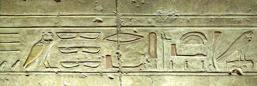 "Que vive l'Horus, taureau puissant, couronné dans Thèbes, qui fait vivre les Deux-Terres"