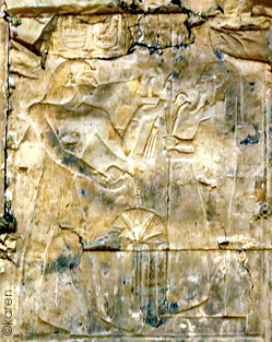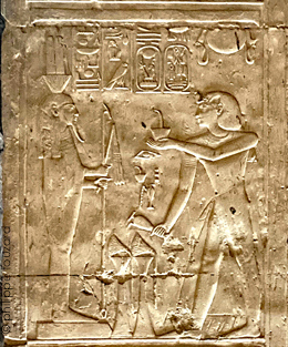 Le roi fumigène de l'encens et verse une libation devant Nefertoum