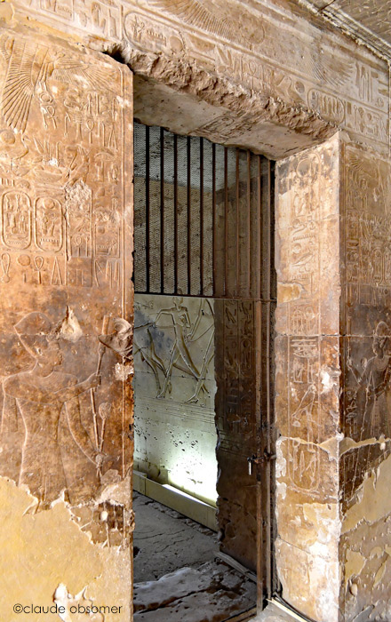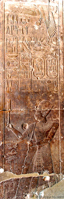 Sur les montants est figuré Sethy, mais sur le chambranle de la porte Ramsès II a fait inscrire ses cartouches.