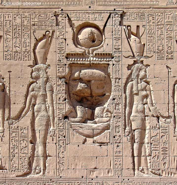 Hathor est la fille de Nout,. Pour elle, celui d'Edfou apparaît. Elle est la Vénérable, souveraine des Vénérables. Ainsi Hathor relie le Nord et le Sud.
