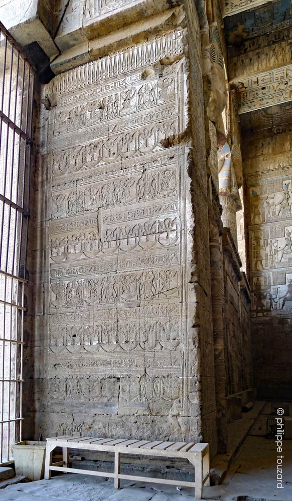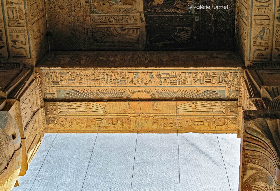 Comme au dessus de chaque passage, le disque ailé d'Horus d'Edfou protège la procession.