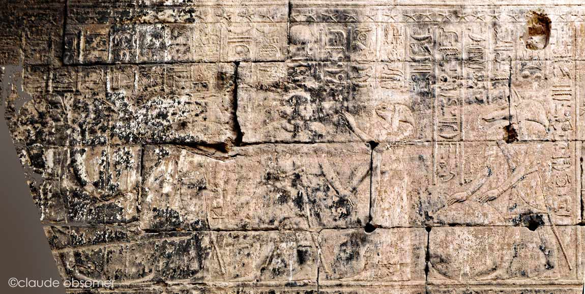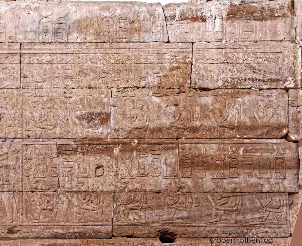 (santé, force, puissance et gloire) au nouveau-né. La frise est couverte des cartouches de Nectanebo.
