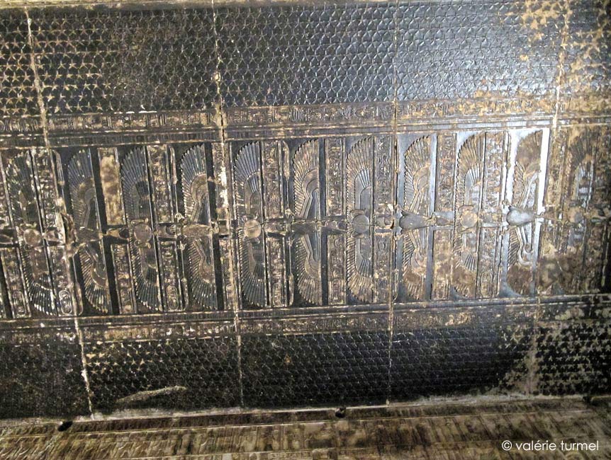 Classiquement le plafond comporte un vol de vautours avec des disques ailés,