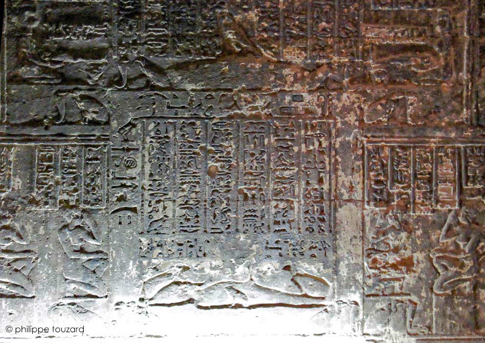 Dès qu'il est complet, le corps d'Osiris est retiré de la cuve et aussitôt momifié. Une scène de cette même paroi Nord montre Anubis procédant à ce processus.).