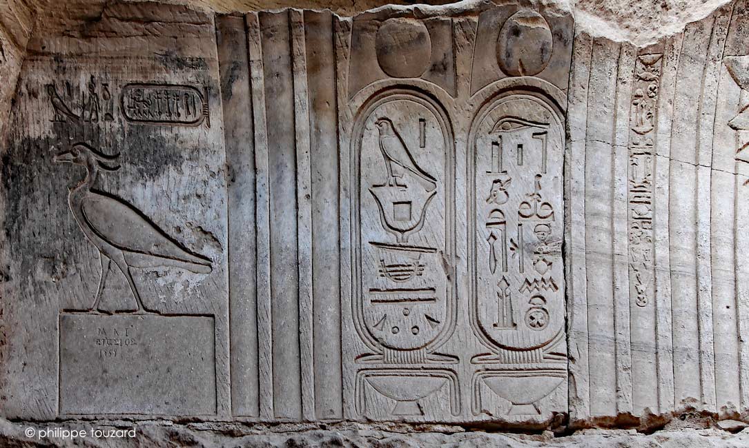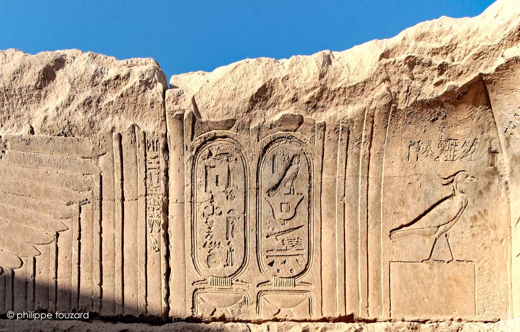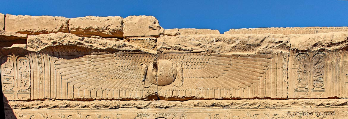 (Celui d'Edfou), le grand dieu du ciel,celui dont le plumage est bigarré, qui sort de l'horizon celui qui préside aux sanctuaires méridionaux.