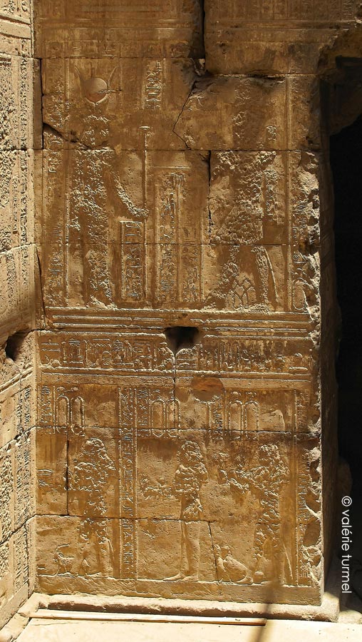 Le roi adore Hathor sur le montant droit et Isis sur le montant gauche.