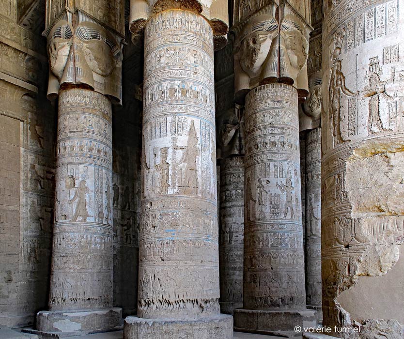 [Le fût des colonnes][Bases][Registre I][Registre II][Registre IV : offrandes][Registres du haut][Abaques]