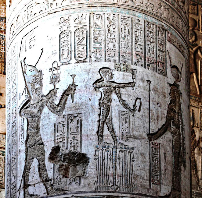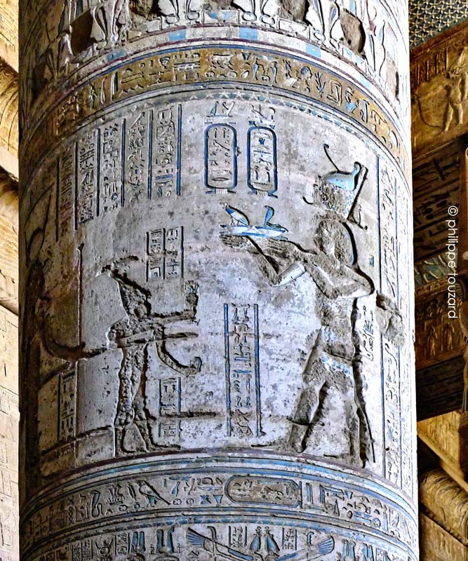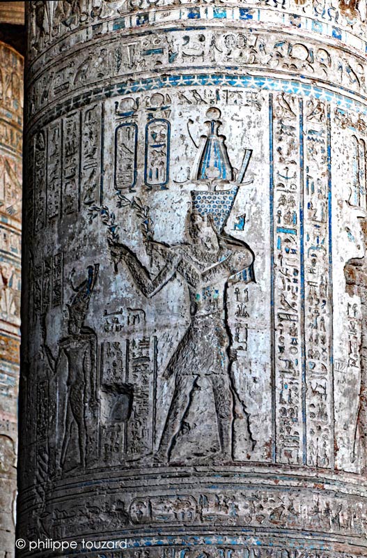 le roi joue du sistre pour Hathor. Un dieu-enfant