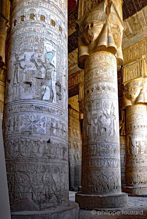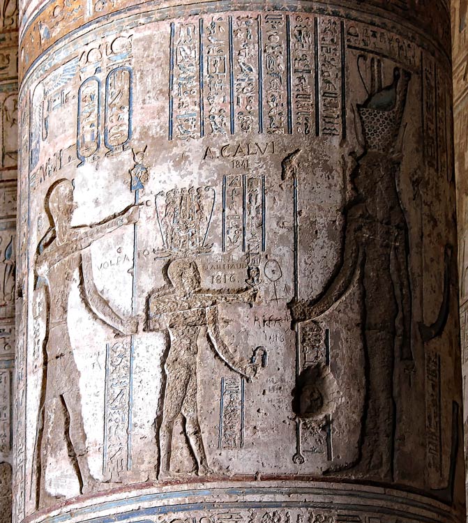 le roi (Claude) présente les Deux Maîtresse à Hathor. La déesse est la seule à figurer sur les tableaux latéraux.