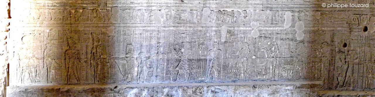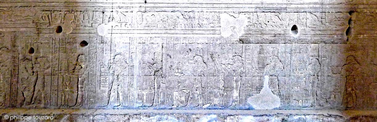 La paroi Sud côté Ouest du pronaos : le défilé des offrandes de la base