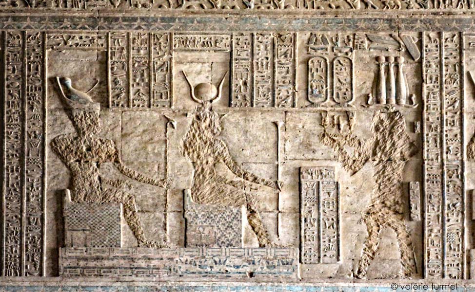 Hathor est représentée avec une tête de lionne, ce qui est assez rare.