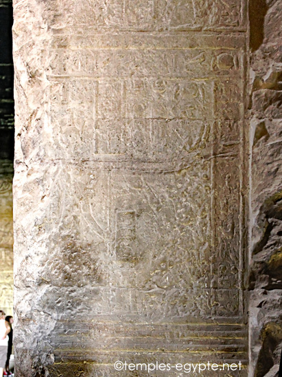Sur les montants, à gauche, le roi offre la Maât à Hathor en haut. Puis de la nourrriture à Ihy. Il fumigéne de l'encens devant Osiris et offre de l'onguent à Horus. Puis il consacre le temple devant Hathor.