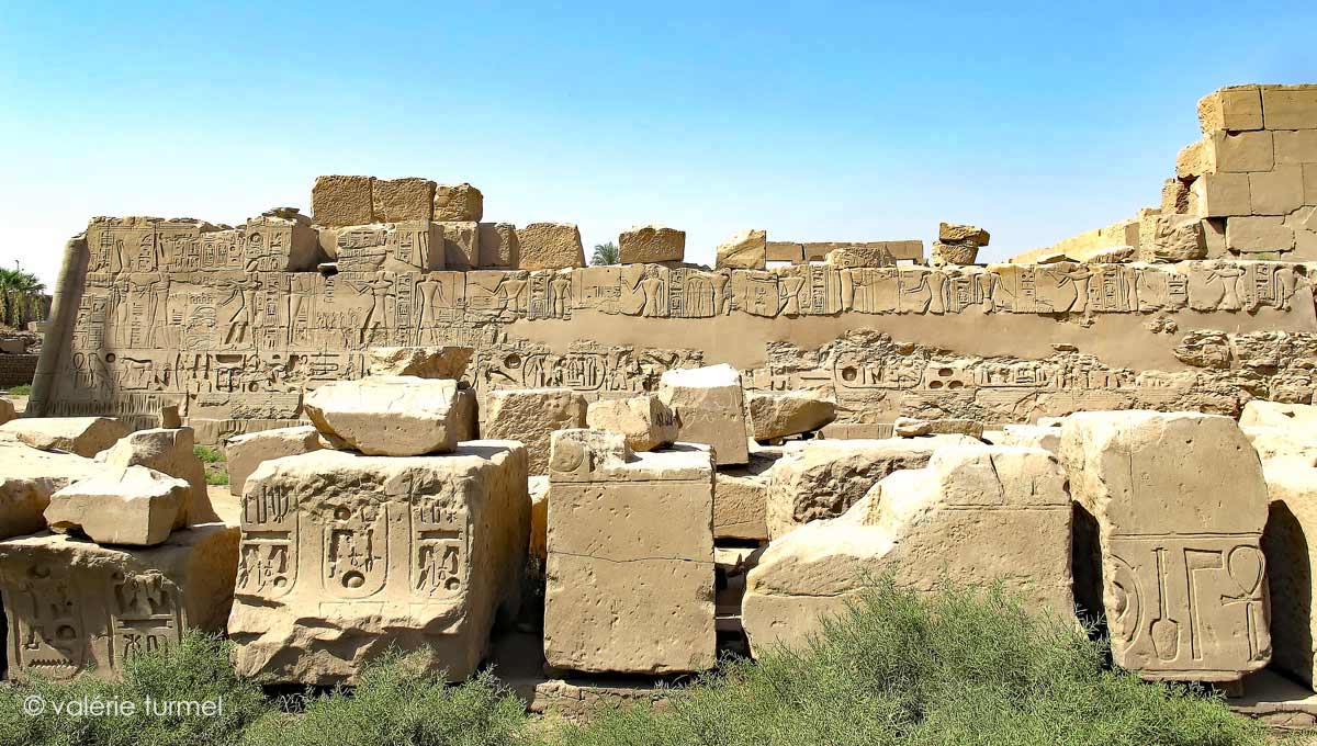 La portion Ouest du mur Nord est écroulée.  La vu ci-dessus montre la quasi-totalité des scènes restantes. Bien qu'elles soient dégradées, il est encore possible d'identifier les offrandes correspondantes pour la plupart d'entre elles, qui correspondent aux numéros de porter et Moss de 78 (offrande du vin) à 85, la scène du coin.
