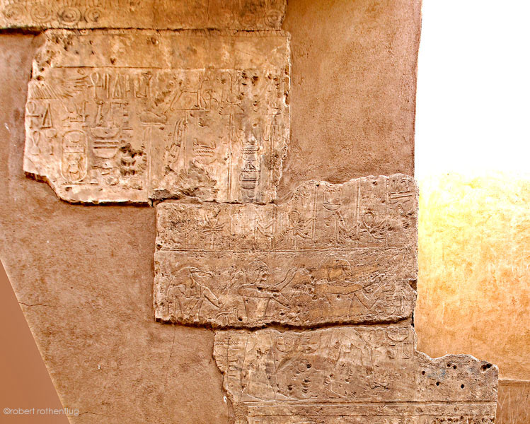 En dessous, Thot et 2 prêtres apportent de l'or et des pierres précieuses.