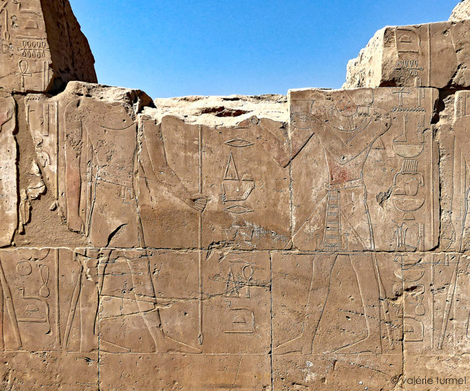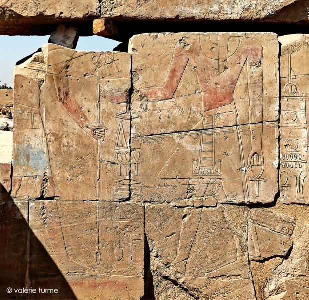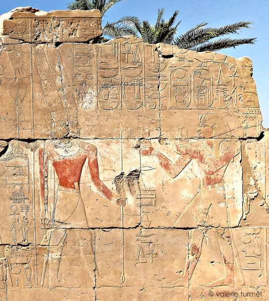 Thoutmosis III  offre deux vases de lait à Amon représenté comme Min,