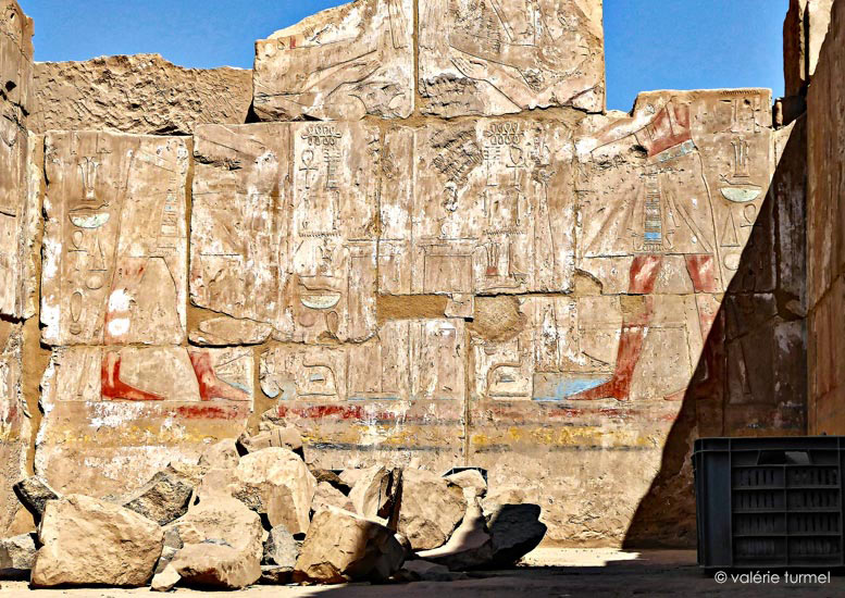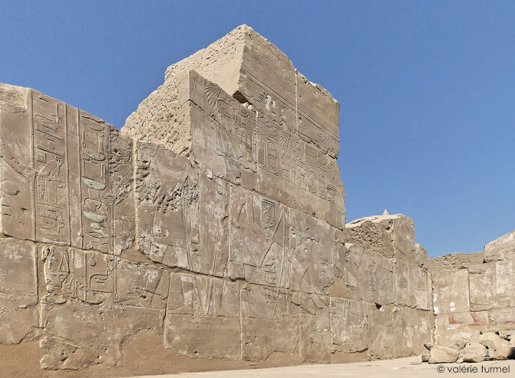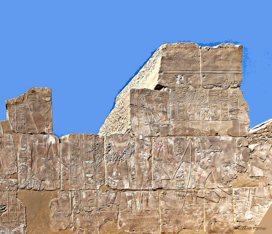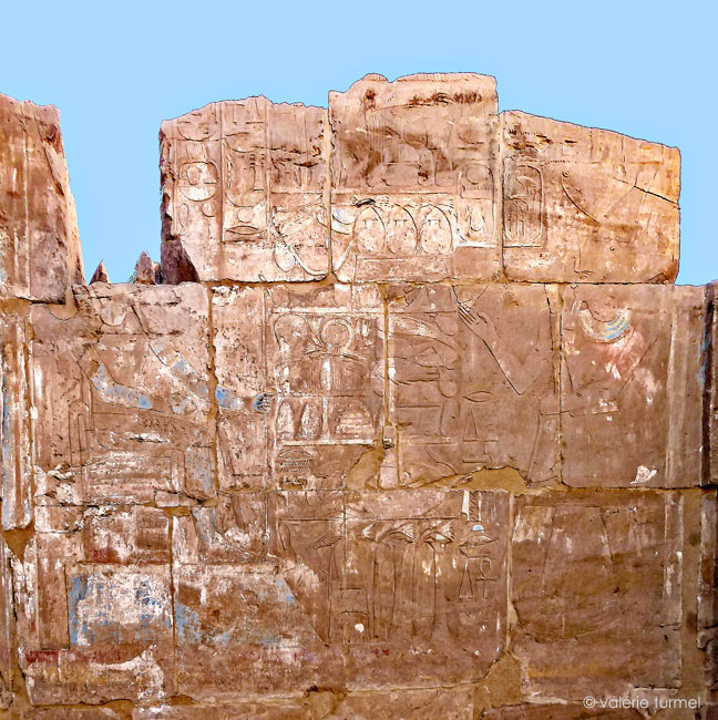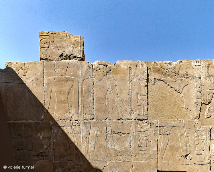 Cette partie de la paroi présente des scènes relatives à la fondation du temple Les 2 dernières scènes du côté Ouest ne sont pas détaillées dans cette page : Sesnat et le roi mesurent le temple dans l'une, et le roi lance du natron pour le nettoyer. Les autres scènes sont détaillées ci-dessous.