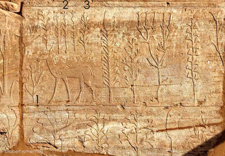 Ce panneau se trouve du côté de la porte située au Sud de la paroi Est.  Une gazelle est représentée au milieu de différentes plantes. D'après les planches de Nathalie Beaux, il est possible d'identifier certaines espèces représentées. :