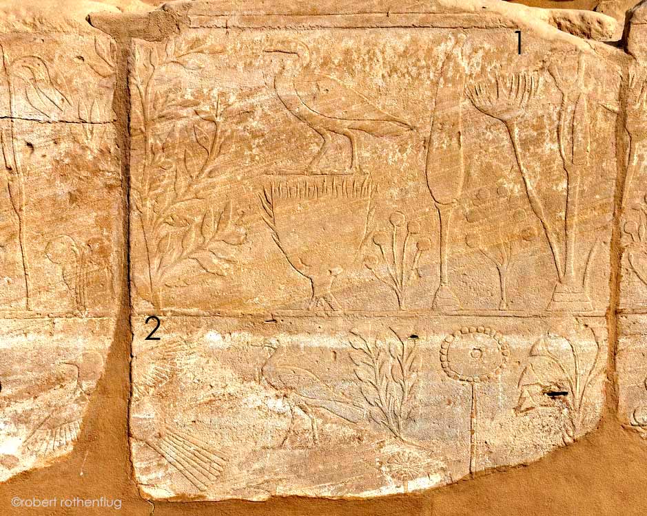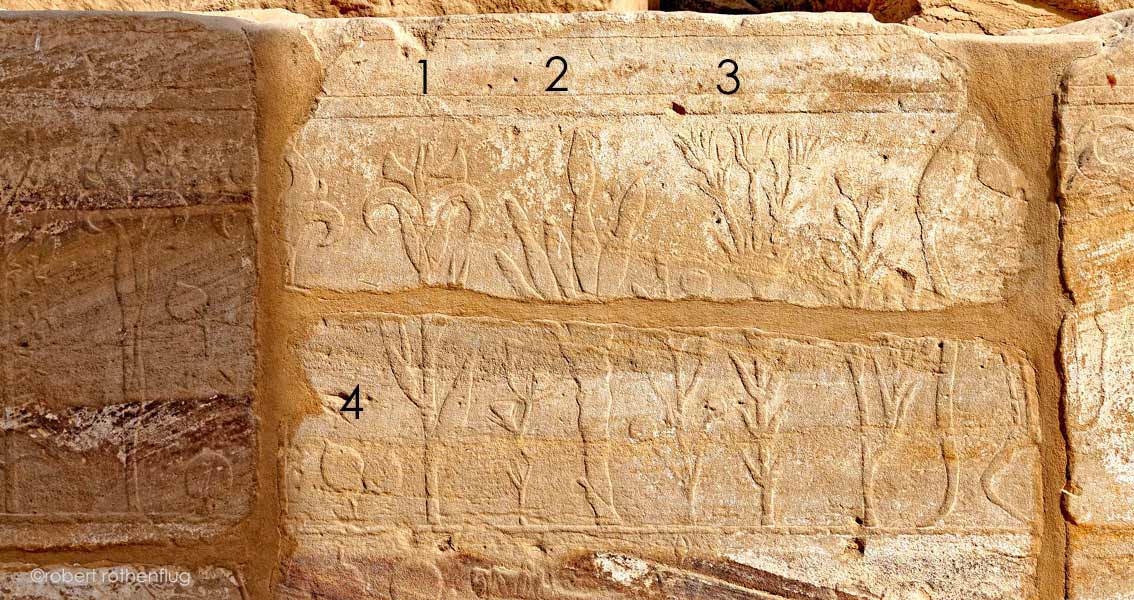 1)Plusieurs Iris sont représentées (Iris atropurpurea) .La fleur est composée de 2 groupes d'éléments. Floraison de janvier à avril. Origine : aire méditerranéenne. Absente d' Égypte.