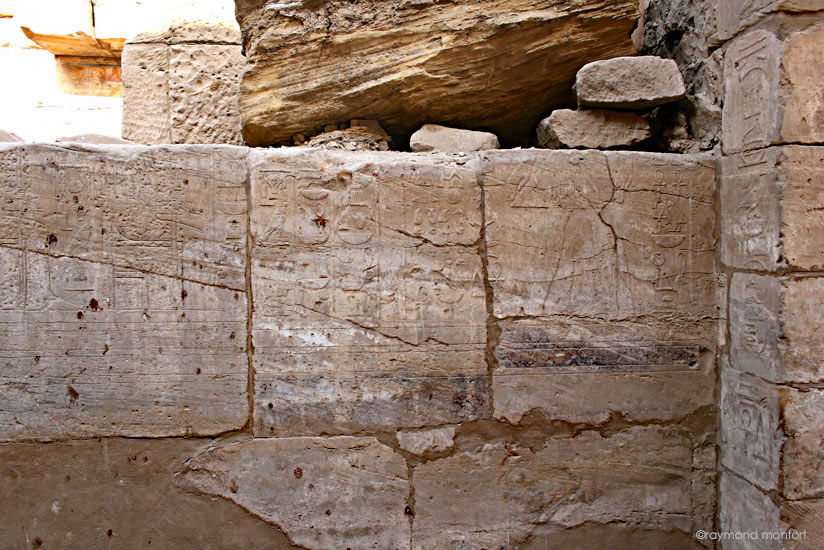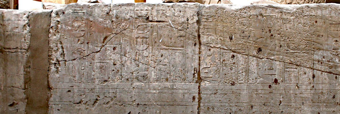 Cette salle est l'antichambre du sanctuaire d'Alexandre. On voit ici le registre inférieur, partie restante du mur Ouest. A doite, la porte de communication avec la salle XXVII. Avant d'entrer dans le sanctuaire, le roi fait une offrande à l' Ennéade