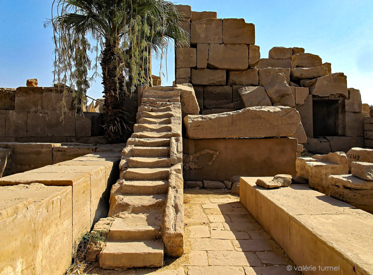 La chapelle solaire a été construite par  Ramsès II sur une sorte de promontoire. L'escalier  pourrait être un peu plus récent, se terminant en fait à une porte de sortie. (voir Barguet, p.203 et 204)