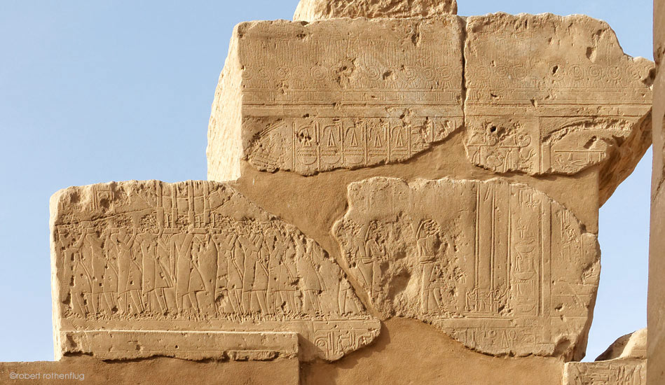 Il est possible de trouver des représentations plus complétés de cette barque dans le Temple de Sethy à Abydos, à Medinet Habou (Ramsès III) ou plus récemment dans le temple d'Hathor à Deir-el-Medineh (décrits dans ce site).