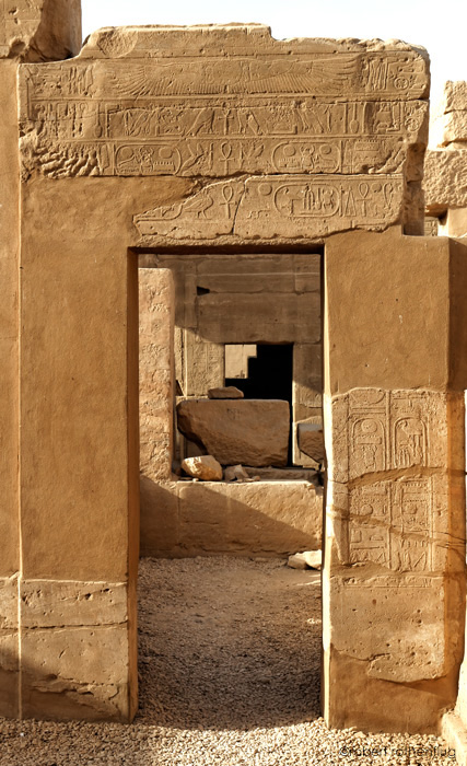 La scène avec la barque de Sokar se trouve entre la 2ème et la 3ème chapelle vers l'ouest. La porte de la 2ème chapelle est très dégradée, comme le hall des salles de Sokar.