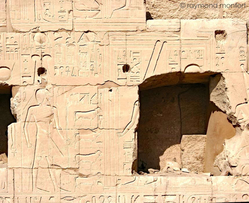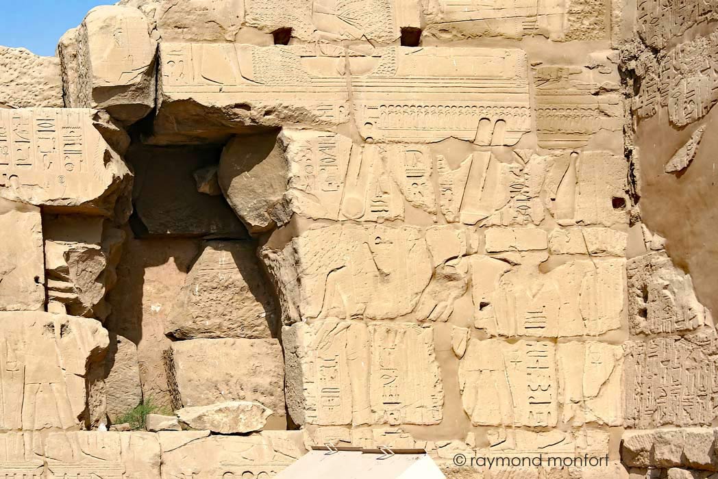 Il s'agit de la scène dite de Montée Royale. L e roi est amené par Atoum et Montou devant Amon et Mout. Devant ces derniers, se tient Hathor faisant le signe dit ni-ni. À droite, la paroi Ouest jouxte le mur Sud de la Grande Hypostyle.