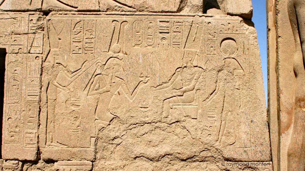 Sethy II reçoit des fêtes Sed du dieu Amon suivi de Khonsou dans Thèbes, Neferhotep.  Derrière lui, se tient Mout fait le geste d'imposition de la couronne du roi. Amon-Rê , le maître des trônes, donne au roi la durée  de vie de Rê. Mout, la grande, la maîtresse du ciel, lui donne des années de vie et de puissance, ainsi que des fêtes-Sed, les années d'Atoum en tant que maître du Double Pays.