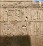 Dans les scènes d'offrandes aux dieux, Sethy 1er, roi très pieux, est agenouillé.