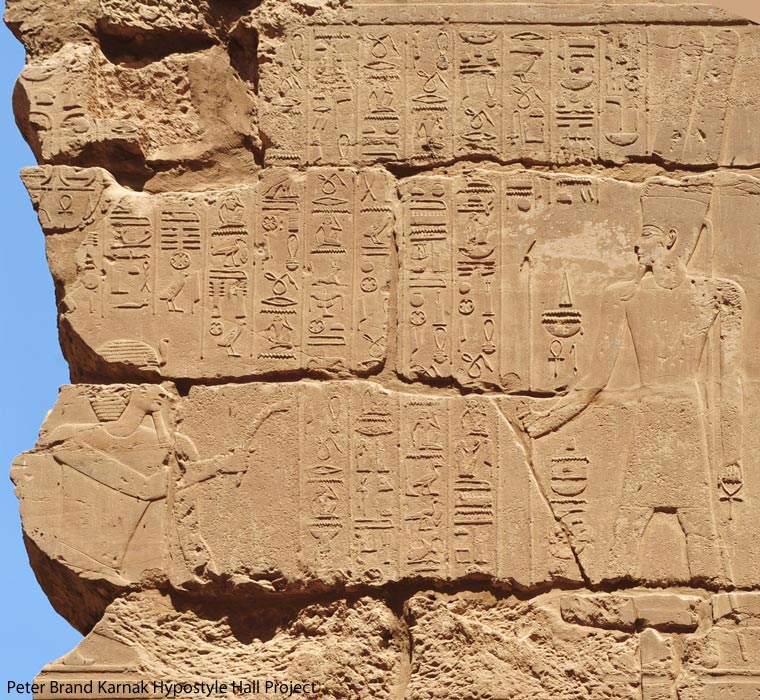 Scène 211 : Sethy 1er agenouillé présente une torche (allumée?) à Amon-Rê. Entre eux, un long texte rituel commence par un souhait sur la durée de la torche et continue en invoquant les dieux de l'Ennéade. Amon lui donne toute vie, pouvoir et bravoure et toute victoire comme Rê.
