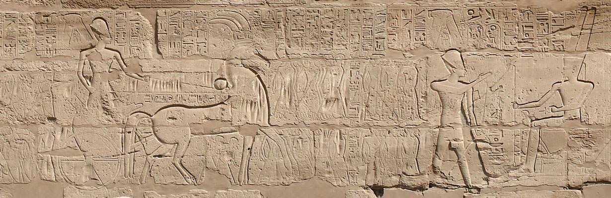 En face de lui, Amon-Rê tend le cimeterre  khepesh considéré comme le symbole de la force royale.
