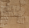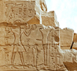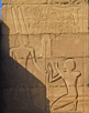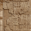Sur les faces e et f, le roi est représenté agenouillé : gravées par Sethy 1er, les scènes ont été ensuite usurpées par son fils Ramsès II.