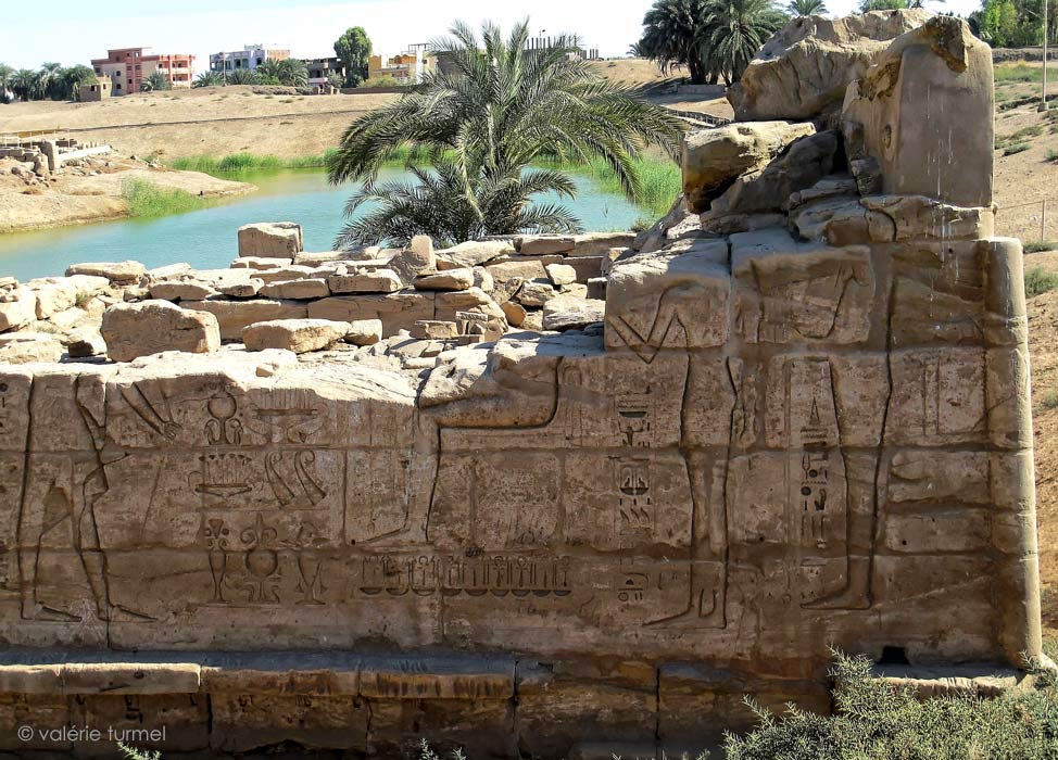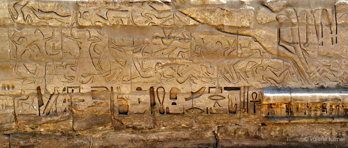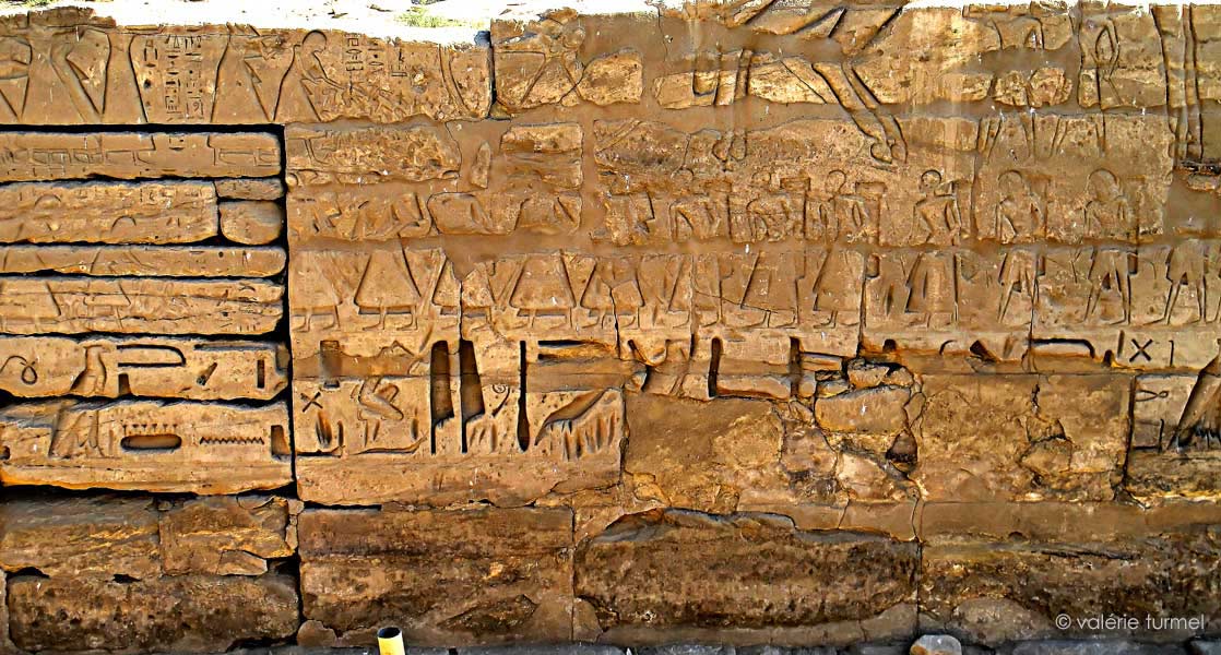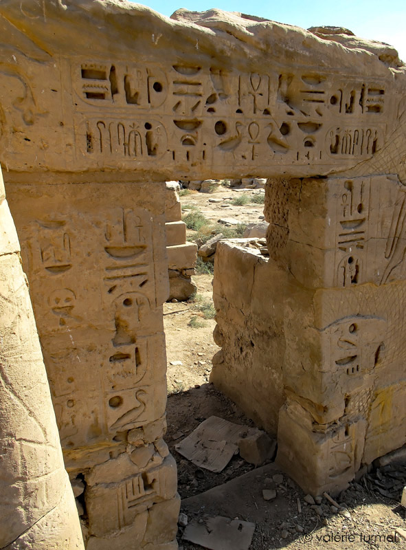 La porte du mur Ouest devait être utilisée pour les processions. Sur son linteau, se trouvent les titres de Ramsès III..