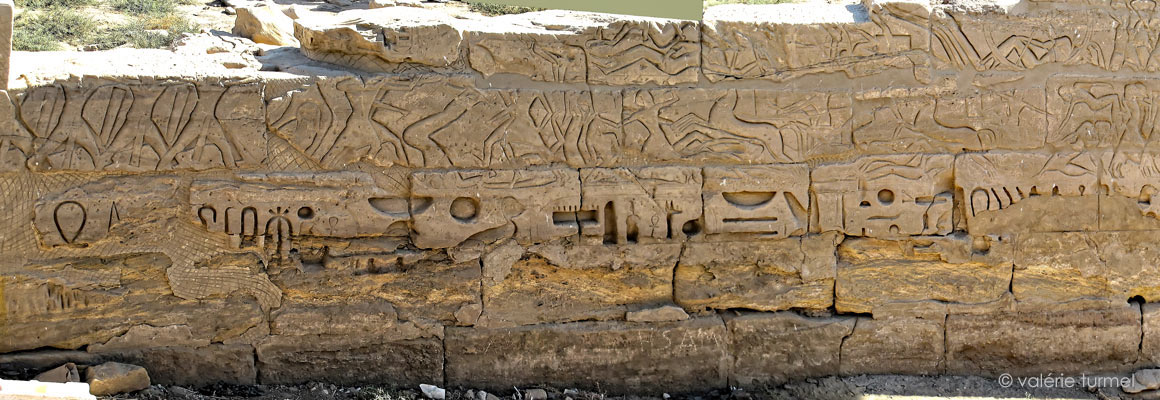 Sur la première ligne "Que vive le roi de Haute et Basse Égypte, le maître du Double Pays, (Ouser Maât Rê, mery Imen)I".