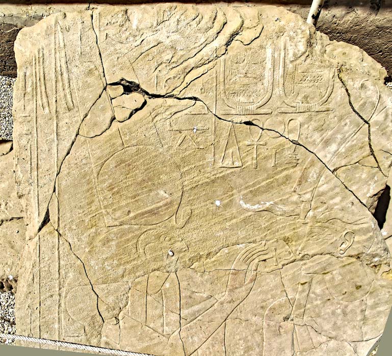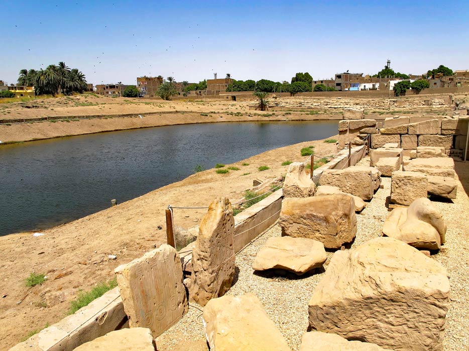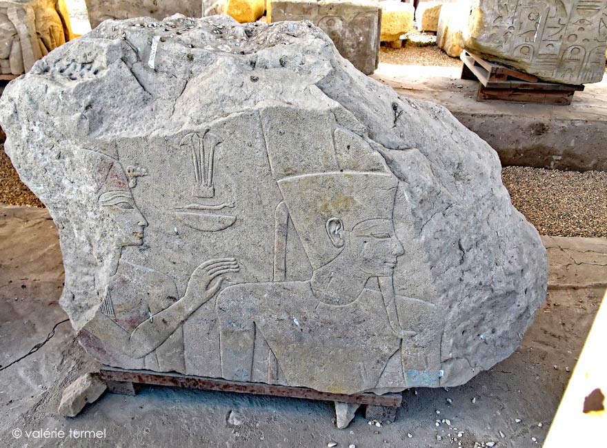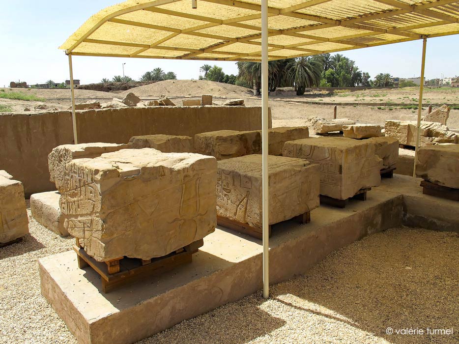 De nombreux blocs sont entreposés en dehors du périmètre du temple. Un grand nombre date deu premier temple en pierre de la XVIIIe dynastie.