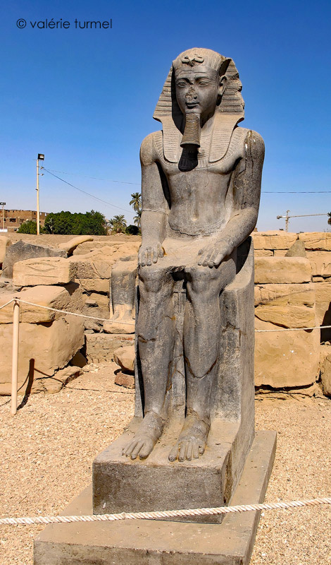 Cette statue de granit fut commandée par Amenhotep III qui supervisa la construction du temple lui-même. Elle a été réemplyée deux fois, une fois lors de la fin de la XIXe dynastie, une 2ème fois lors de la XXIr dynastie.
