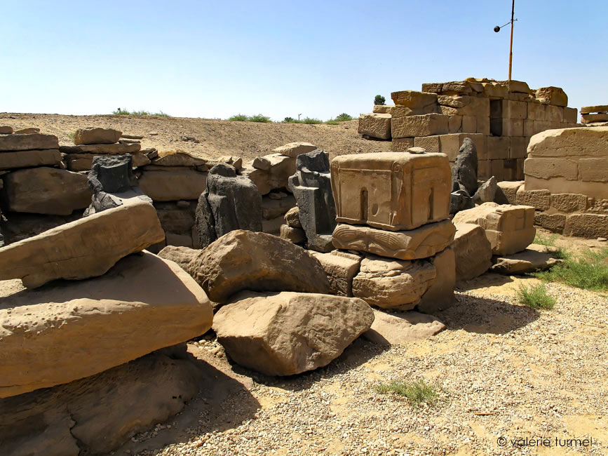 Devant les vestiges des petites statues de Sekhmet, dans les blocs, on voit