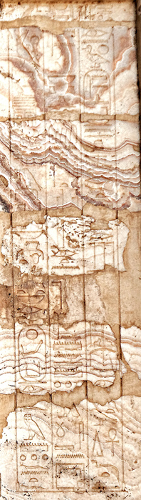 Sur les 2 côtés de la façade, sont inscrites les titulatures d'Amenhotep 1er. "Taureau qui soumet les pays, ..Djeser ka rê ... Amen hotep" |