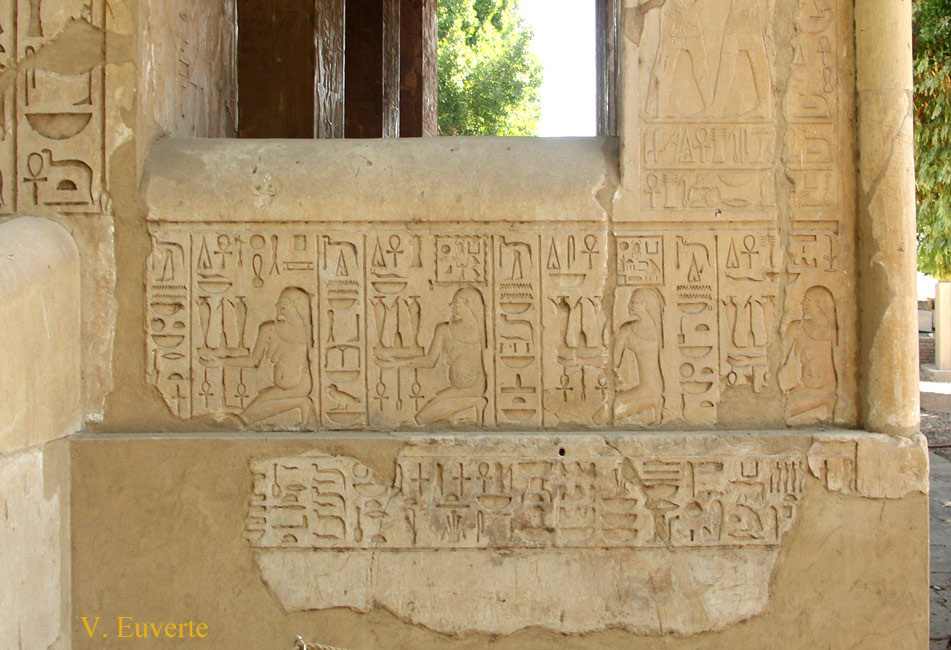 Le soubassement de la moitié nord n'a pu être reconstitué que partiellement. La personnage a moitié reconstitué personnifie la chapelle de la pyramide du roi (celle de Licht).  L'autre porteuse d'offrandes personnifie également une chapelle.