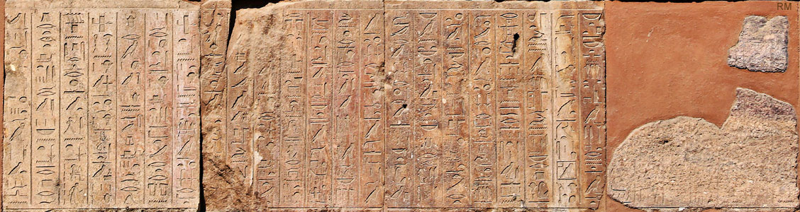 Cette assise est constituée du texte oraculaire d'Hatchepsout, racontant comment Amon l'a désignée pour être reine. Les hiéroglyphes doivent être lus de la droite vers la gauche. Trois parpaings sont manquants à gauche.